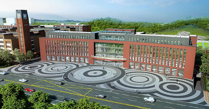 走進廣東外語外貿(mào)大學附設清遠外國語學校,紅色的外墻成為這所學校的主色調(diào)。廣外清遠外校項目占地面積約232畝,總建筑面積約26萬平方米,學校總體建設以“設計學校就是設計未來”為理念,配備有室內(nèi)體育館、恒溫游泳館、600人報告廳,室內(nèi)外演出劇場、科創(chuàng)教育空間、活動室、國際田聯(lián)標準運動場等教學設施,為學生提供優(yōu)質(zhì)、舒適的學習生活環(huán)境。